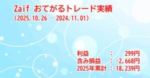Zaif おてがるトレード実績 (2025/10/26~11/1)