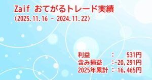 Zaif おてがるトレード実績 (2025/11/23~11/29)新着!!