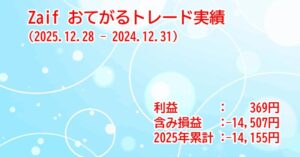 あけましておめでとうございます。今年も、Zaifおてがるトレードで頑張っていきましょう! では、Zaifおてがるトレード、2025年12月28日~12月31日、2025年〆の実績です。 なお、最新の設定については、こちら […]