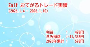 Zaif おてがるトレード実績 (2026/1/4~1/10)新着!!