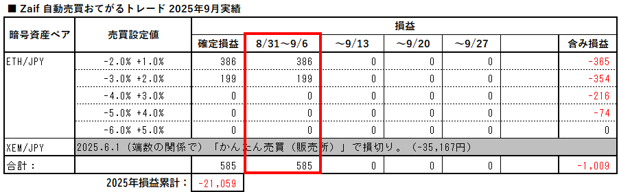 Zaif おてがるトレード実績 (2025/8/31~9/6)